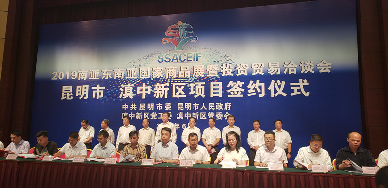 6月13日下午,“2019南亞東南亞國家商品展暨投資貿易洽談會昆明市 滇中新區項目簽約儀式”在昆明市級行政中心昆明會堂舉行。